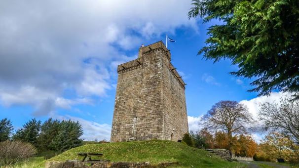 Likewise within the area of Calderglen Country Park situated on the banks of the Rotten Calder Water stood Calderwood Castle. The castle began life as a ‘Peel Tower’ fortification when it was first constructed. The two main towers were built separately between the 13th and 14th centuries, on the site of an earlier wooden construction. The building stood at roughly 90 feet tall with walls circa 7 feet thick. The footprint of the building measured just short of 70 feet in length and 40 in breadth. The structure was transformed from the robust, practical fortification, towards the more comfortable direction of a manor house with the addition of two new house wings in the mid-18th century. The Castle was once the seat of Baronet Sir William Maxwell from which he operated his business interests from among the tranquillity of the shielded picturesque setting. Disaster struck in 1773, following days of heavy winds and rain, when the original towers collapsed into the gorge, burying the stables situated beneath the castle. Amazingly this calamity led to only one fatality in that of one of the resident hunting dogs. The ruined towers were rebuilt into a new modern style mansion.